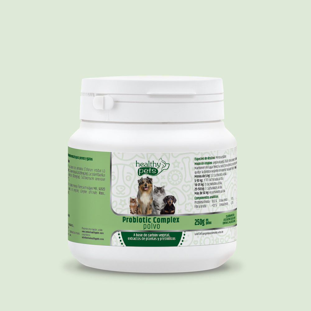 1. Alimentación: La dieta de tu mascota es muy importante para su salud y bienestar. Una forma sencilla y eficaz de cuidar de su salud gastrointestinal es el Probiotic Complex de Healthy Pets, pues para usarlo solo debes añadirlo a sus comidas. Asegúrate de seguir las instrucciones del veterinario sobre la alimentación adecuada para tu mascota.
